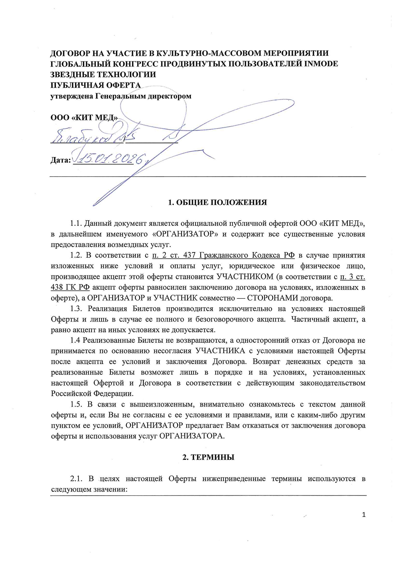«Мероприятие» – информационно-просветительское культурно-массовое мероприятие – Глобальный конгресс продвинутых пользователей INMODE Новая эра, посещение которого возможно только при наличии Билета;